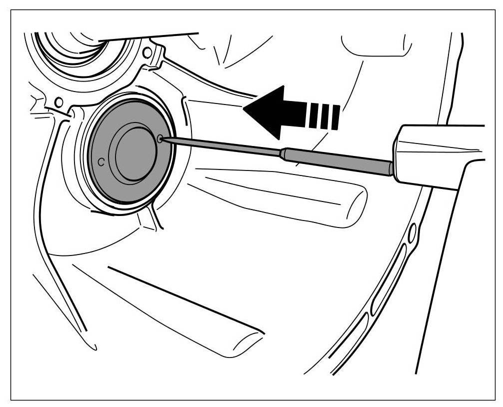 1. Drive new cap in flush using special tool pressure piece t10180.
