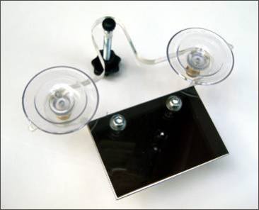 Apply gel to the suckers of the inspection mirror and attach the mirror to the inside of the windscreen so that the procedure can be monitored from outside. => Securing mirror