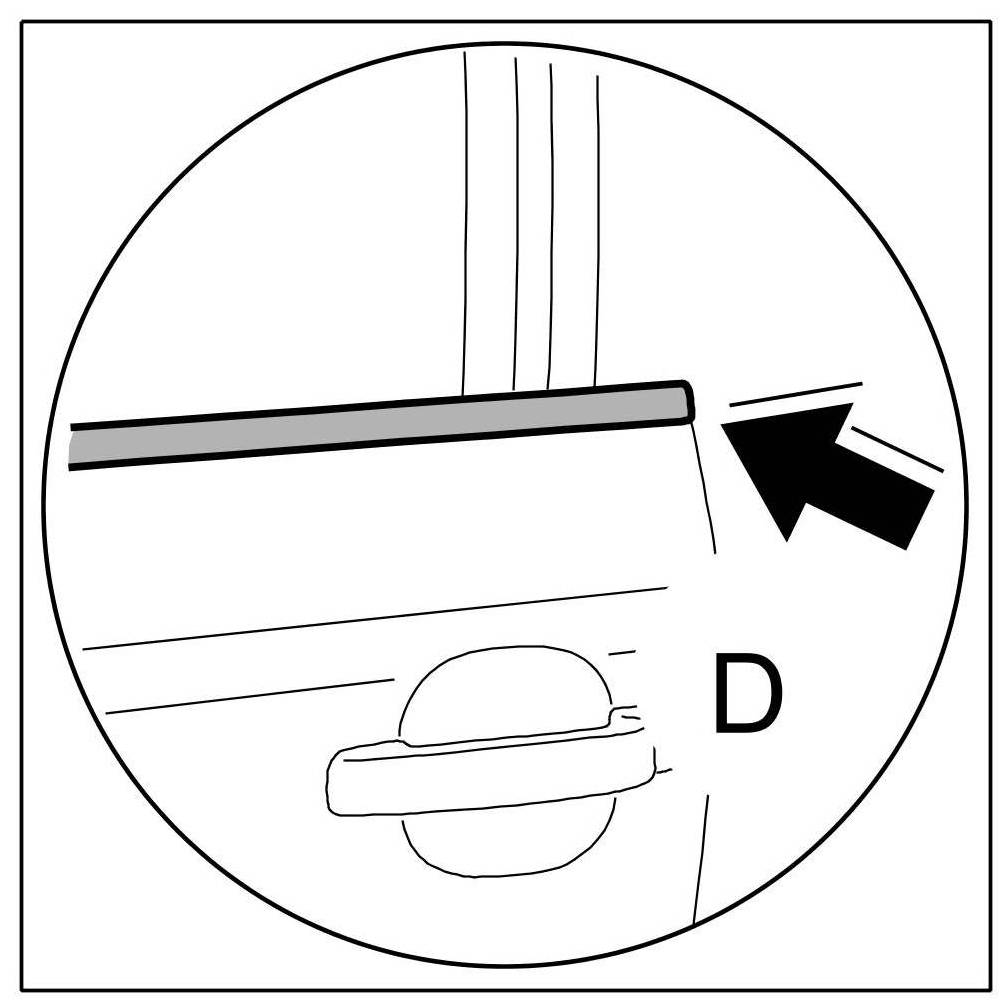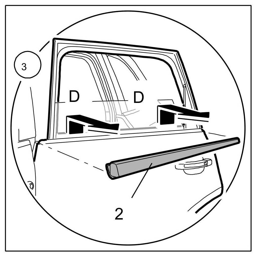 2.1. Close rear door window -1- completely ( -Arrow E- ).