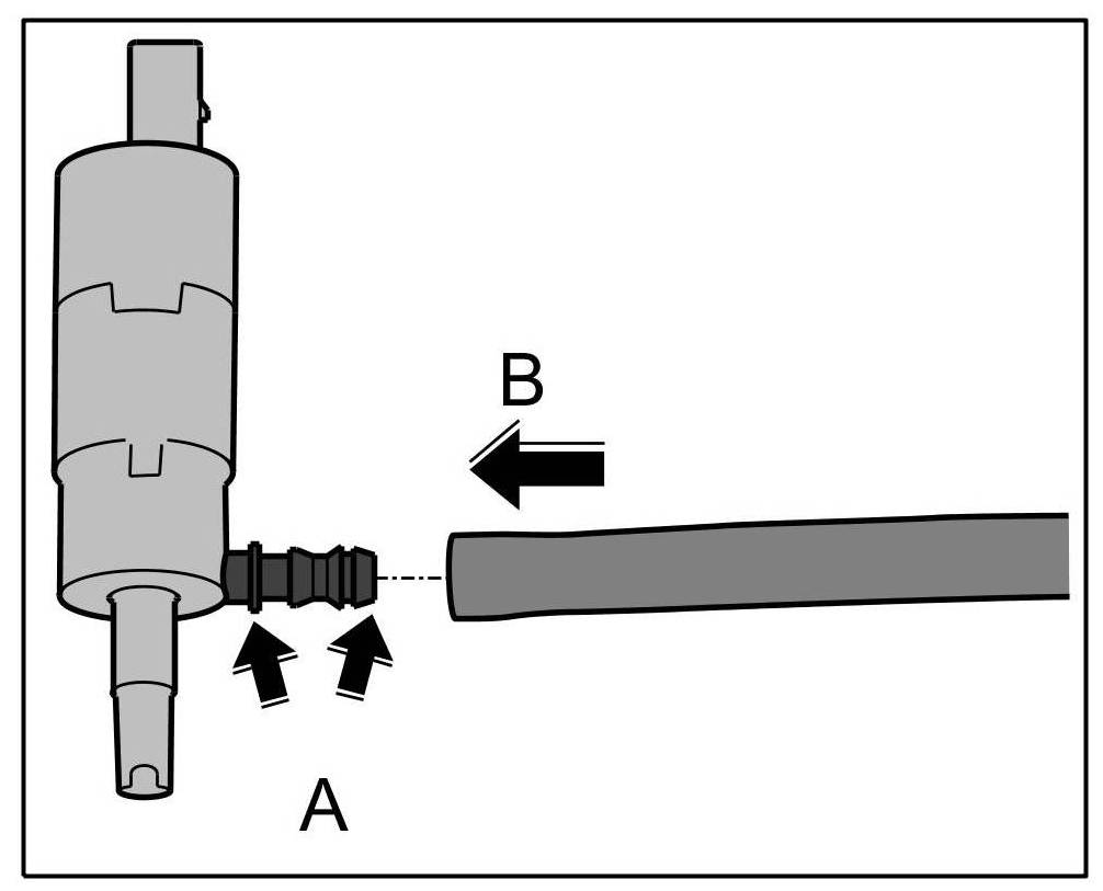 5. Press high-pressure hose into retaining tabs -Arrow A- until it is felt to engage in the tank.