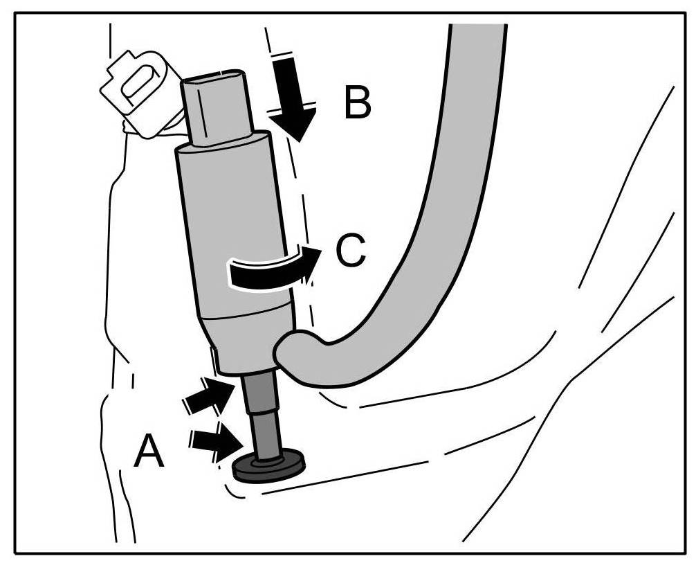 4. Press high-pressure pump completely into rubber gasket -Arrow B- and rotate to the limit position -Arrow C-.