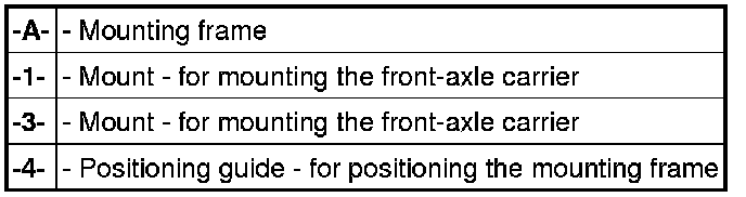 1. Position the -front-axle carrier- on the mounting frame.