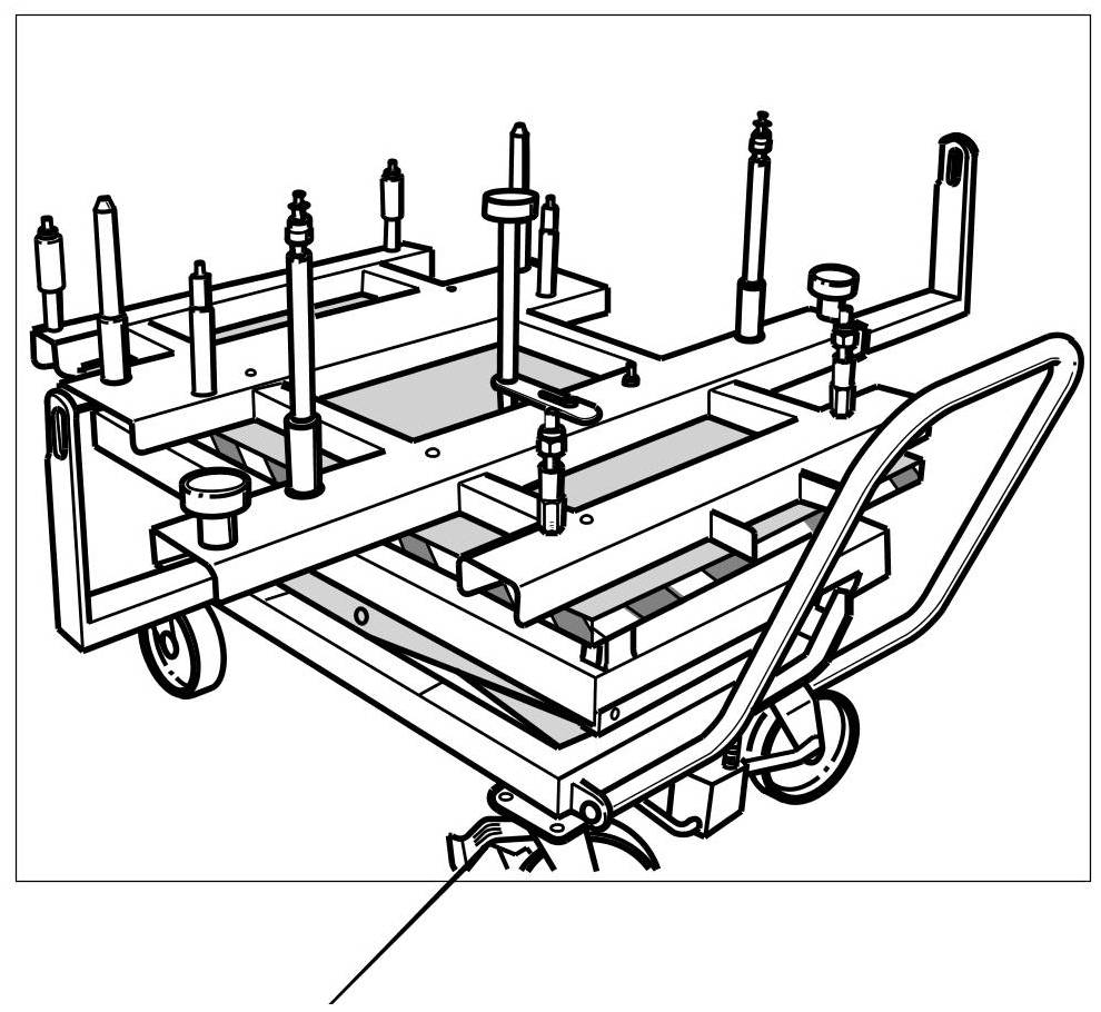 15. Position the -workshop trolley- with the correctly positioned mounting frame under the front axle carrier.