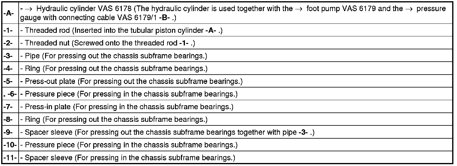Tool overview for chassis subframe bearings