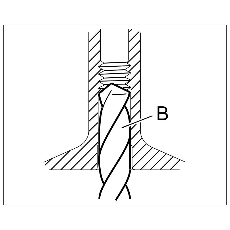 - While pressing in the base thread, a noticeably larger amount of force on the screw-in tool is required to form the internal thread. Pressing is finished when the screw-in tool can be turned further more easily.