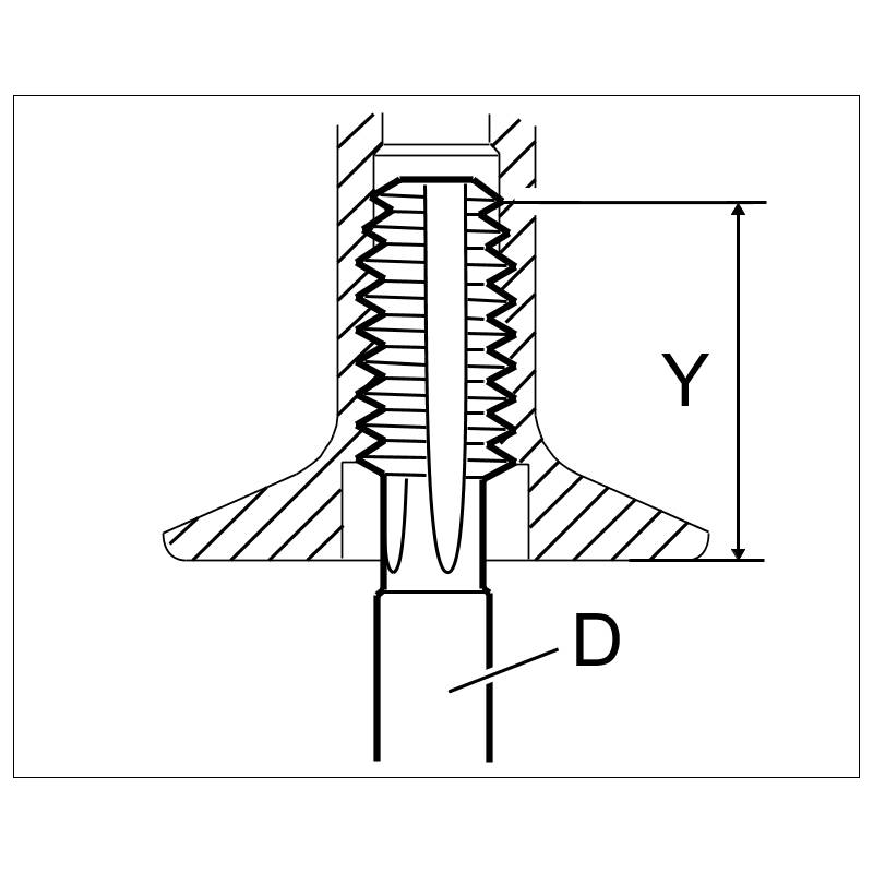 3.1. Cut thread using a cutting tool -D- up to dimension -Y- in the chassis bushing. => Test and adjustment value: 40 mm Clean thread on chassis bushing (blow out swarf).
