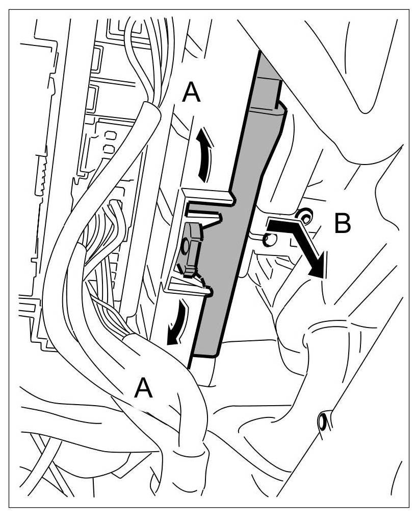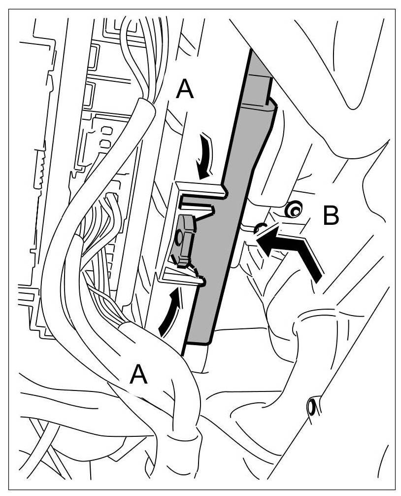 3. Slide the control unit into the upper mounting point -arrow B- and engage it in the holder -arrows A-.