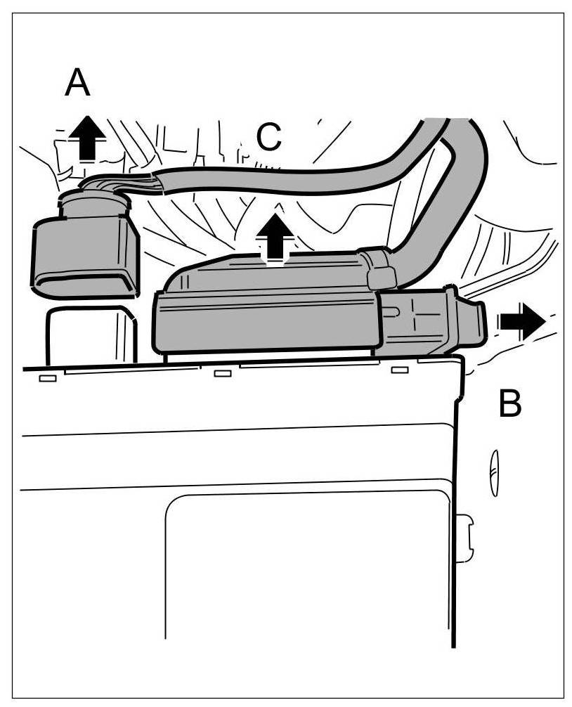 1. Connect and lock the connector -arrow C- ( -arrow B- ).