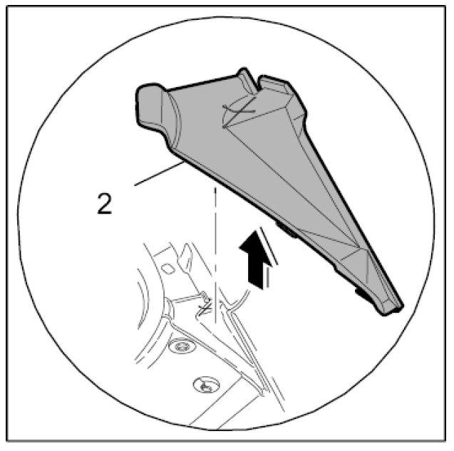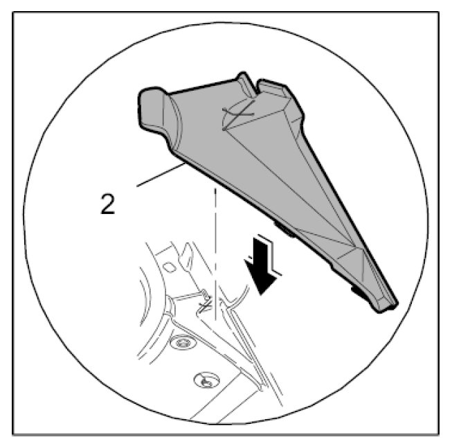 14.2. Fit the left rubber cover -2- from above and press in the rubber tabs.