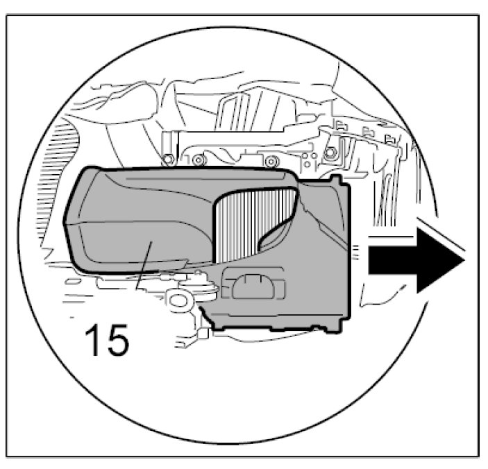 2.2. Slide the side air guide -15- outwards and remove it.