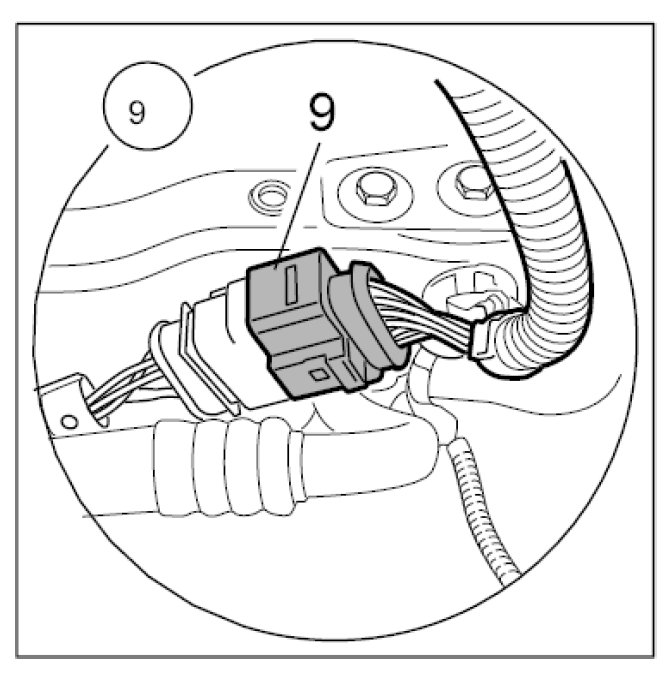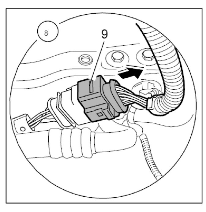 8.1. Disconnect electric plug connection -9- on the left side of the vehicle. Release the lock and pull off the connector.
