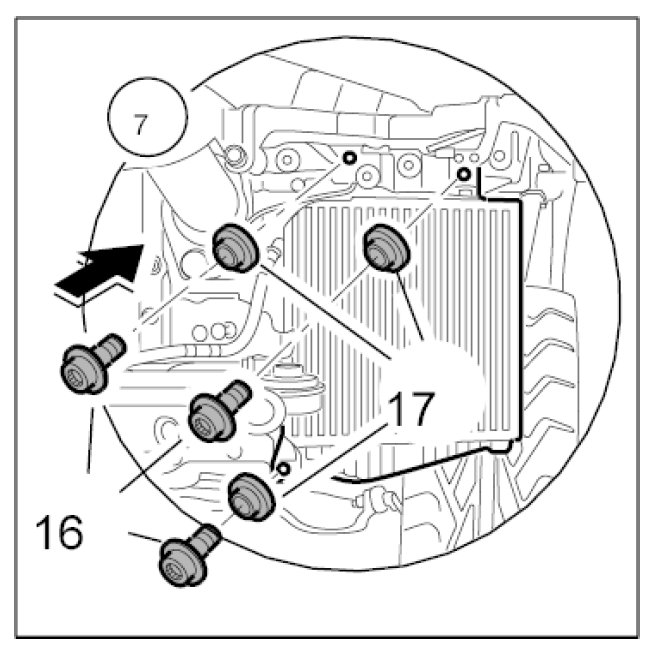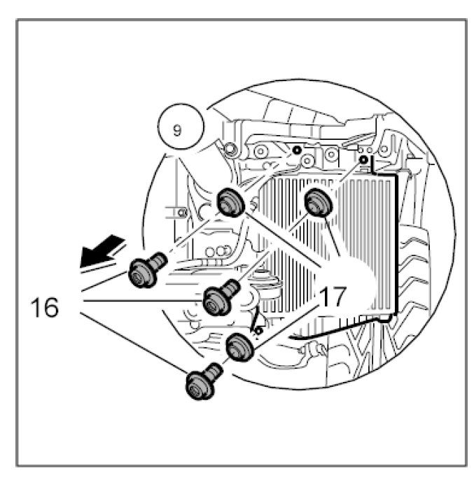 9. Detach the charge air cooler.