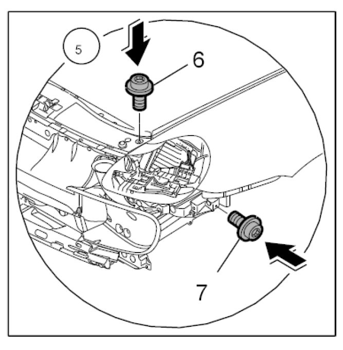 5.1. Screw in fastening screws -6 and 7- on both sides of the vehicle and tighten slightly.