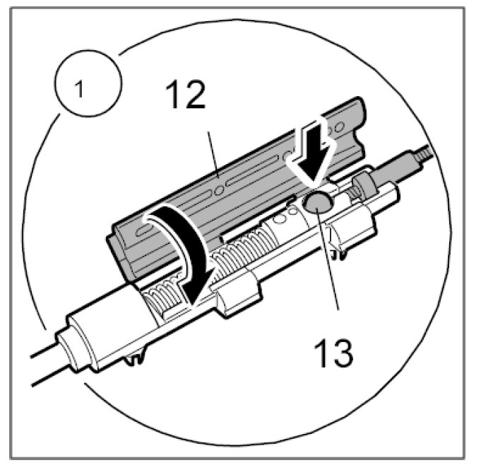 1.1. Engage the cable for the front lid lock -13- and close the lid -12- on the connection piece.
