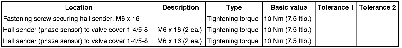 1. Fit the hall sender into the valve cover and tighten the fastening screw. => Tightening torque: 10 Nm (7.5 ftlb.)