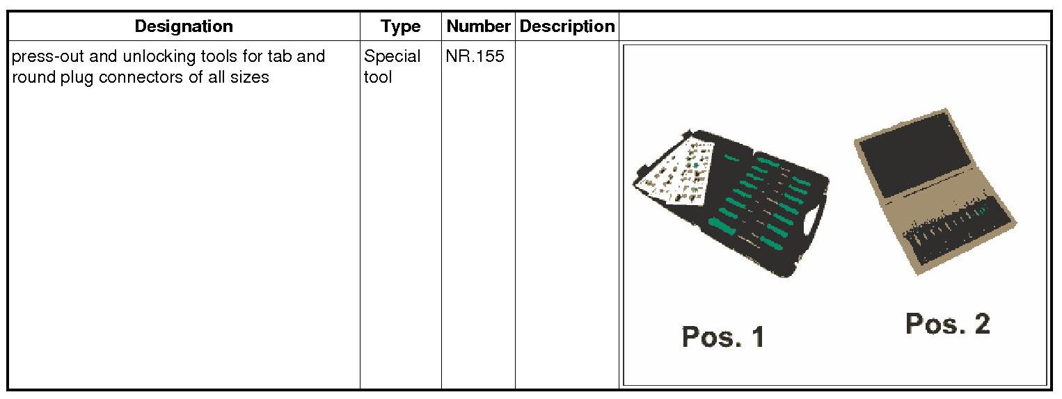 2. Position the press-out and unlocking tools for tab and round plug connectors of all sizes NR.155 on the primary locking mechanism and lift the locking mechanism.