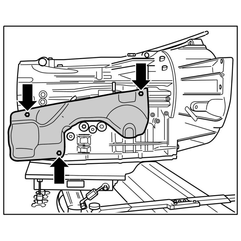 2. Remove shield on the transmission. To do this, unscrew three fastening screws -Arrow-.