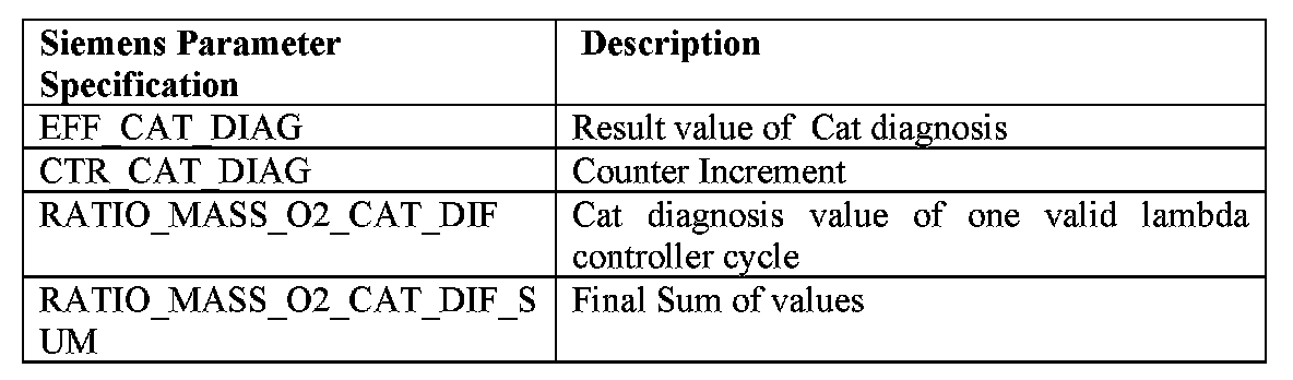 The diagnostic function which is used for monitoring of the catalyst efficiency is based on measure of the oxygen within the catalyst determined by the upstream and the downstream oxygen sensor. If all monitoring conditions are fulfilled, then a special defined A/F-modulation will be done. The relation of the deviations between the current downstream-sensor-signal to the average value of the downstream-sensor-signal is a sign for catalyst condition. The catalyst system is considered malfunctioning, if after a specified number of monitoring cycles the average of the ratios exceeds a threshold. The corresponding fault code is stored.