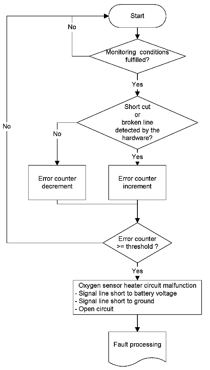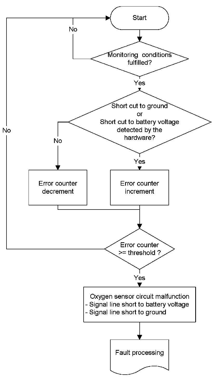 The oxygen sensor circuit monitoring detects the malfunctions by evaluating the error information received from oxygen sensor microcontroller: