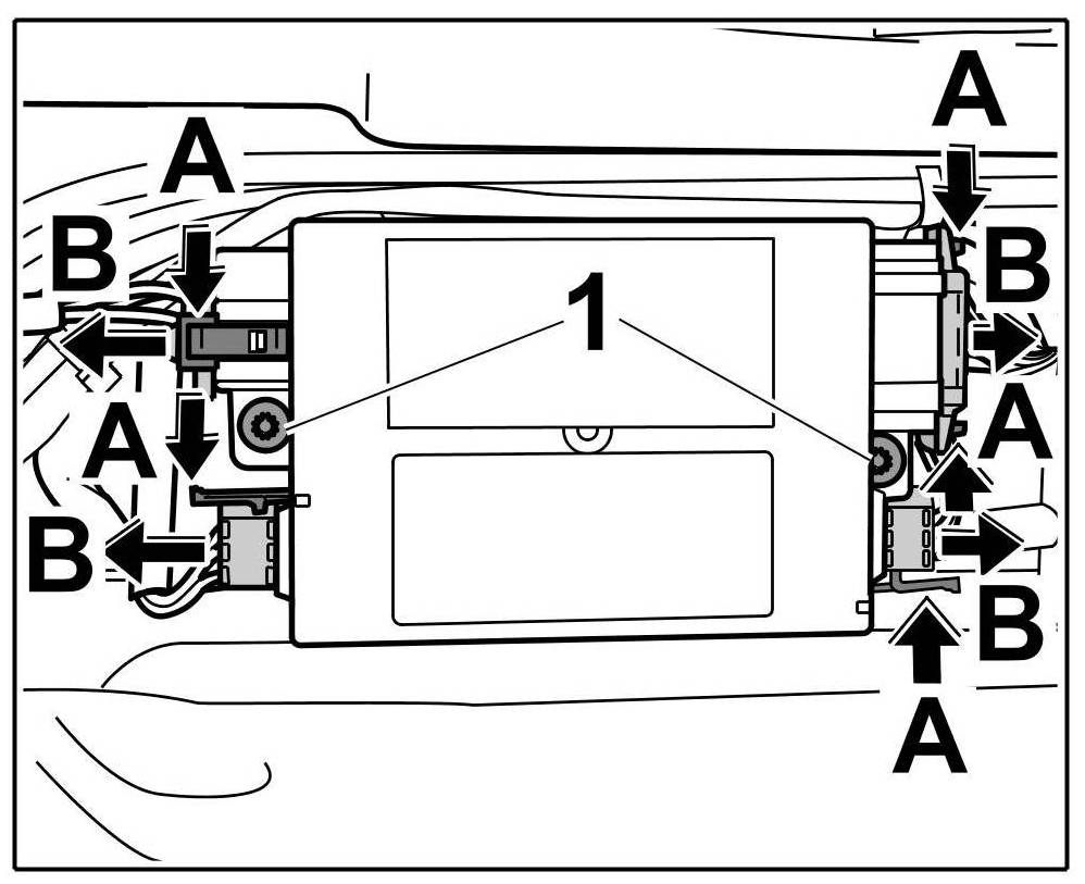 1. Release the connectors -Arrows A- and pull them off -Arrows B-.