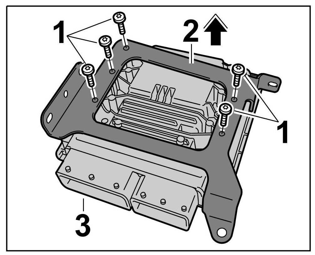 3. Unscrew fastening screws -1- and remove the support -2- from the DME control unit -3- ( -arrow- ).