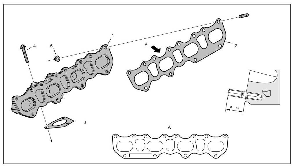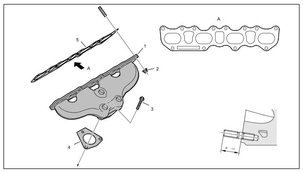 Exhaust manifold on turbo engine M48/51, cylinders 1 to 4