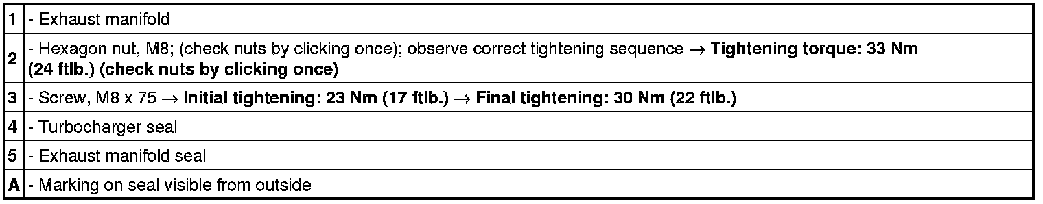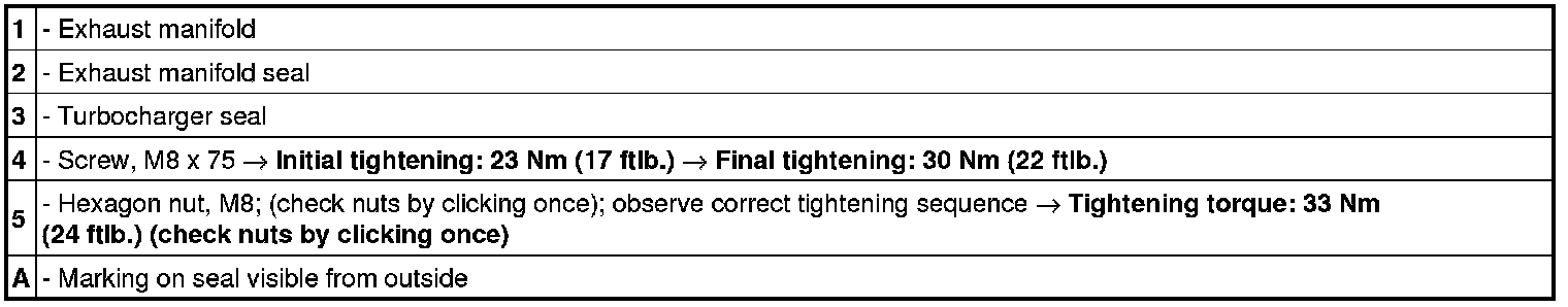 Tightening sequence for exhaust manifold on turbo engine M48/51, cylinders 1 to 4