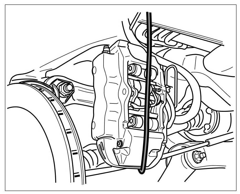 1. Release brake caliper and hang at a suitable position in the wheel well -> 474119 Removing and installing rear brake caliper 47411900 Removing and installing rear brake calliper. Do not open the brake system.