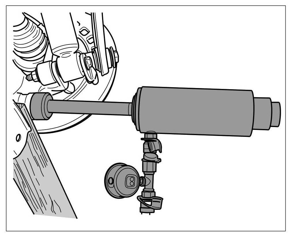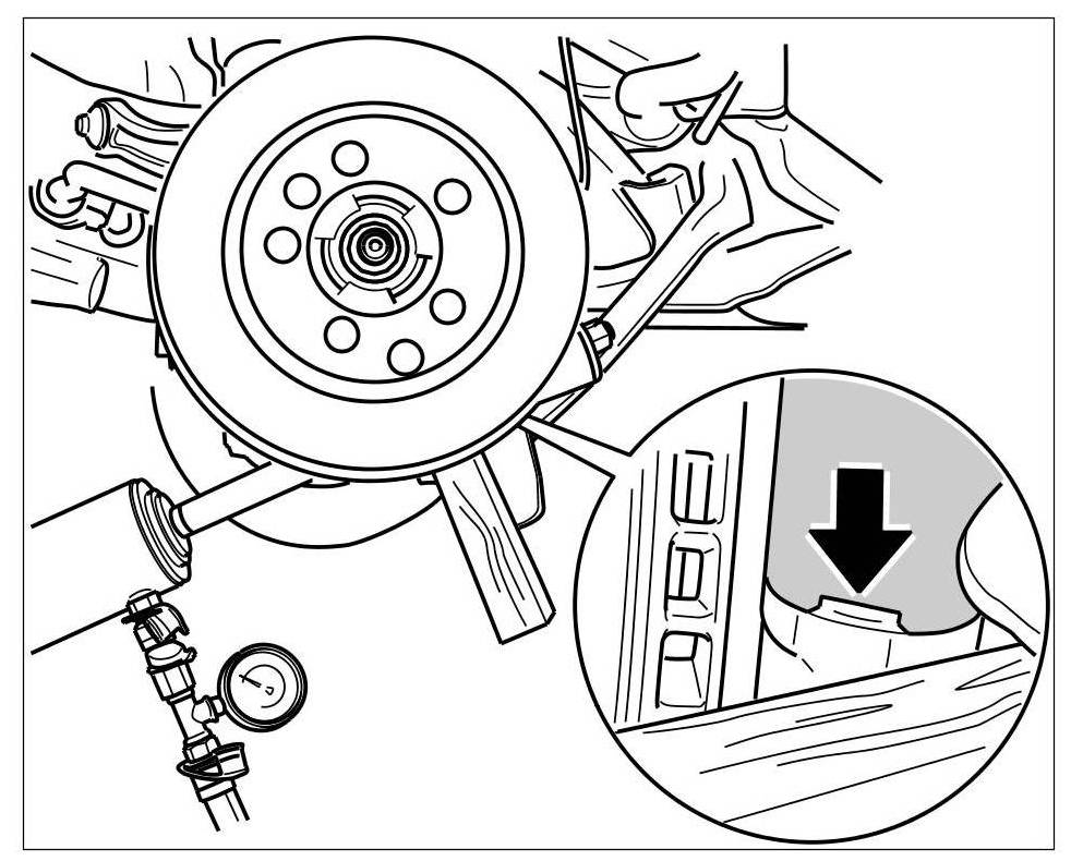- Use an intermediate layer (hard rubber). Do not damage the brake cover plate.