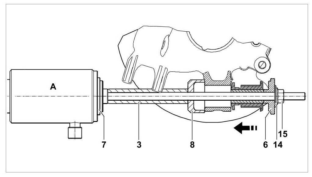 6. Position the tubular piston cylinder -see figure- and pre-tension slightly to prevent the pressure pieces from slipping out of place. Check the position of the pressure pieces again.