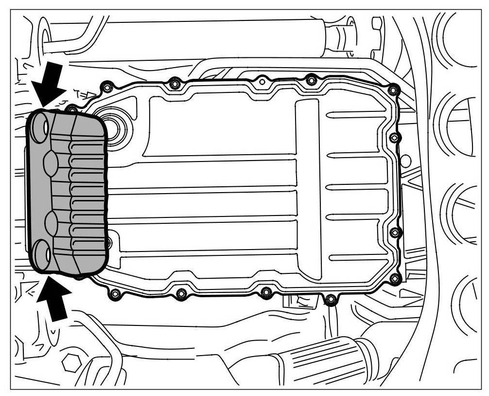 1. Remove cover of ATF pan. To do this, loosen the two fastening screws -arrows-.