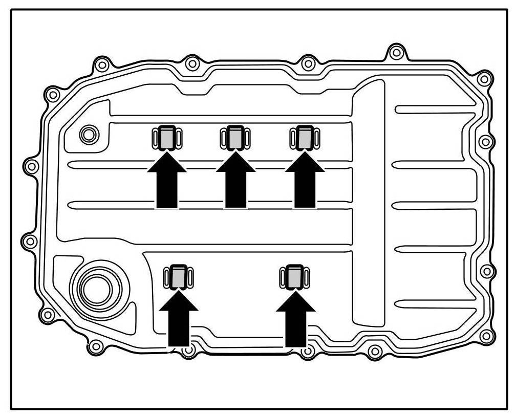 2. Check position of the magnets -arrows- in the oil pan.