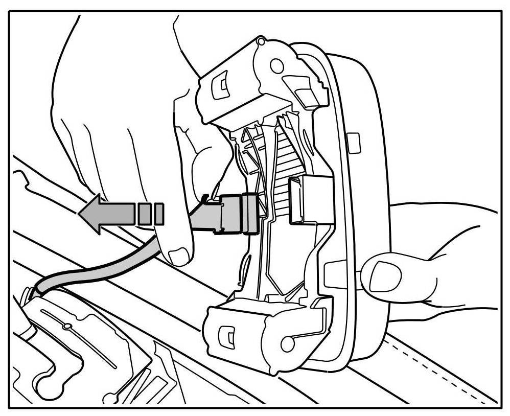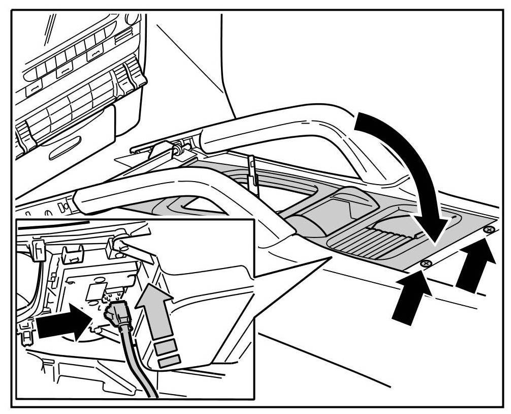 3. Position cable connection -inset- on the underside of the centre console cover.