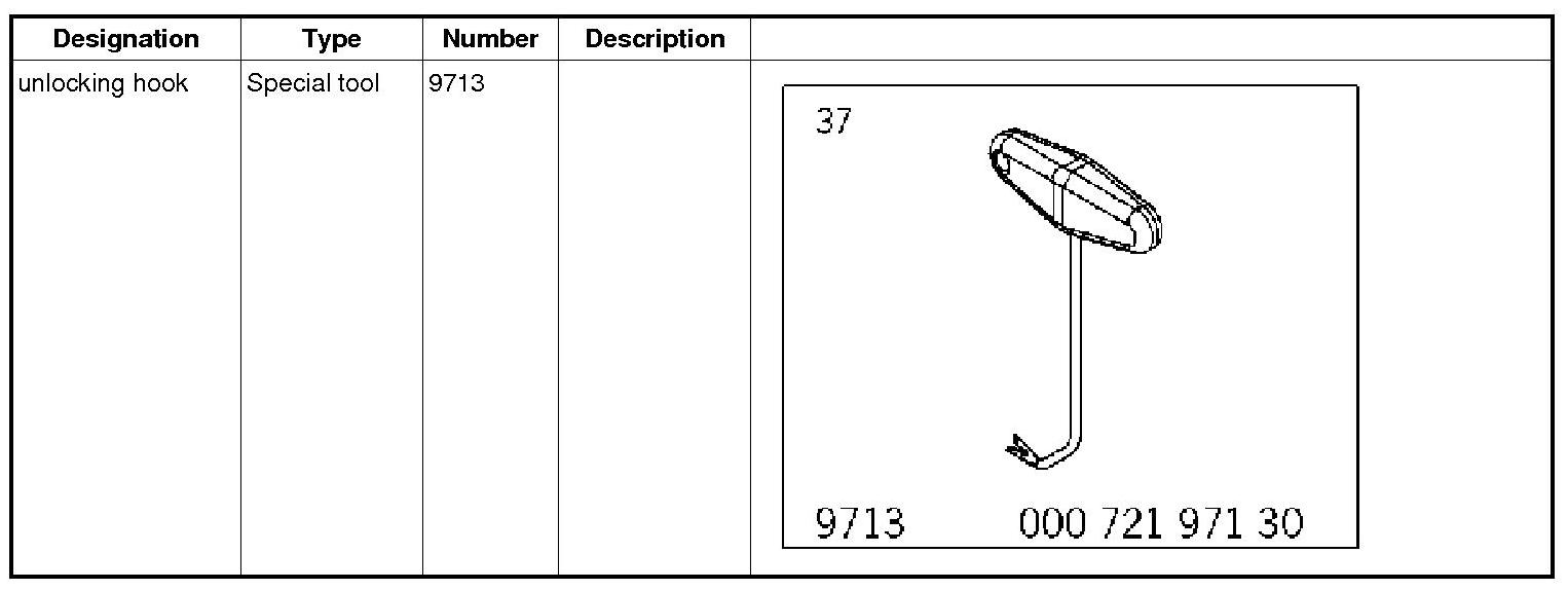 3. Remove selector lever cover with special tool unlocking hook 9713. To do this hook into the left and right of the unlocking bracket -inset- from the front and press outwards. Pull the cover upwards slightly at the same time.