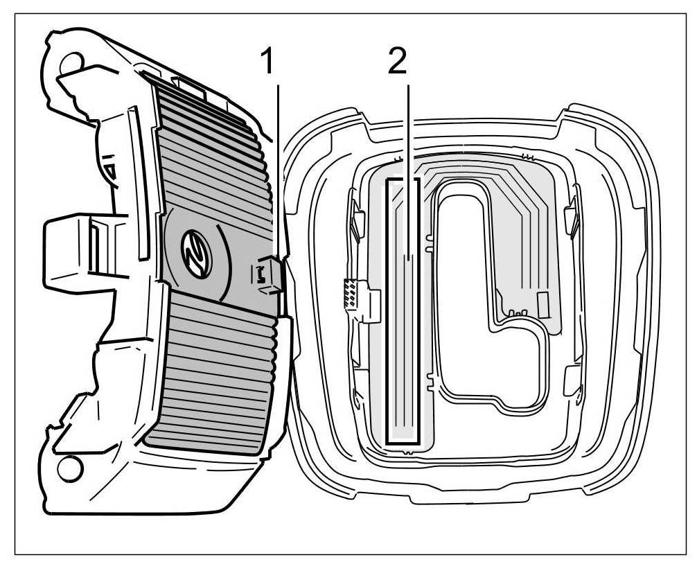 2. The shade must be inserted in the correct position, sliding contact -1- on grinding track -2-.
