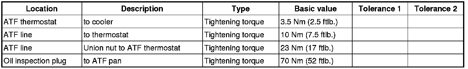4. Tighten ATF thermostat fastening screw -arrow- to cooler. => Tightening torque: 3.5 Nm (2.5 ftlb.)