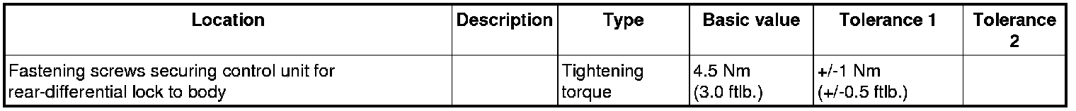 3. Fit control unit for rear-differential lock -2- into the body -arrow- and secure with the fastening screws -1-. => Tightening torque: 4.5 Nm (3.0 ftlb.)+/-1 Nm (+/-0.5 ftlb.)