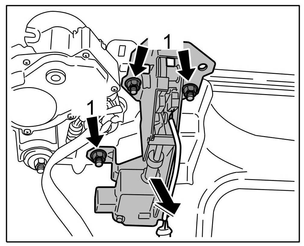 3. Unscrew fastening nuts -1- and remove lower part -arrow-.