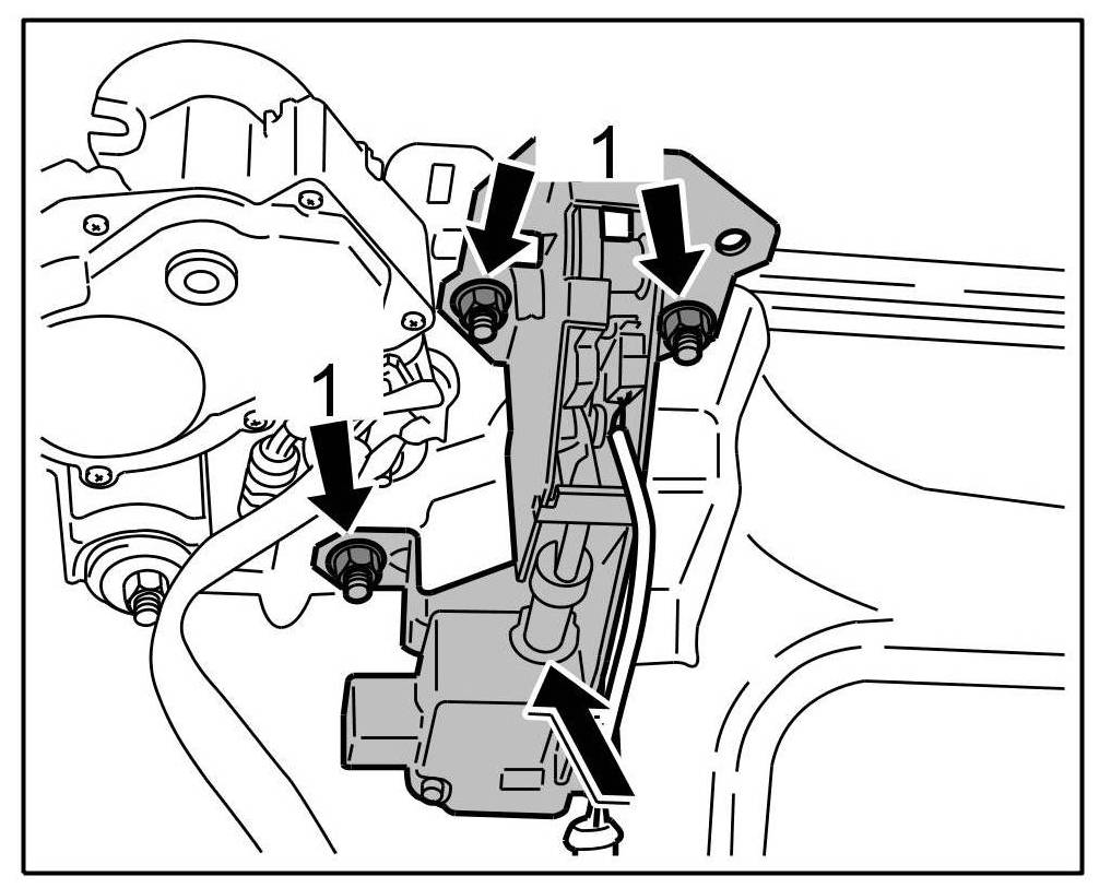 1. Install lower part -arrow- and tighten with fastening nuts -1-.