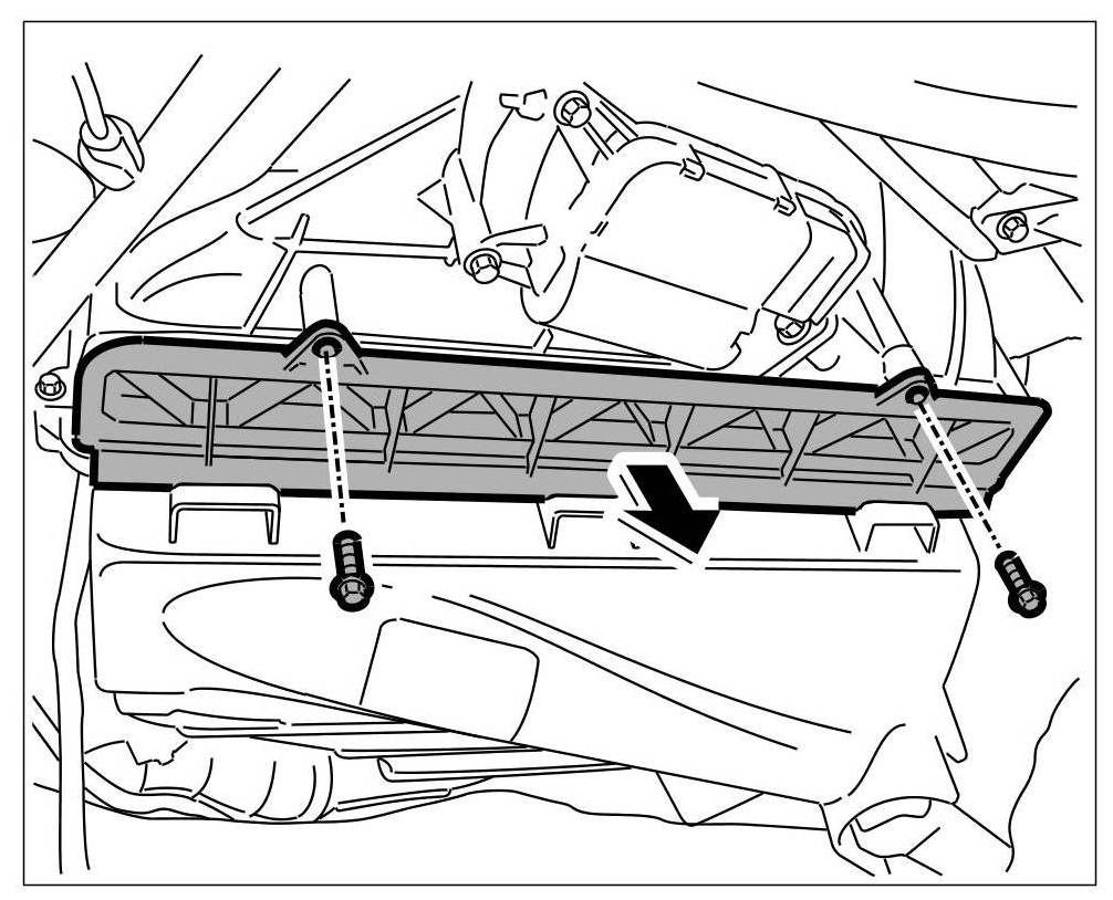 Install cover under dashboard right. -> 702219 Removing and installing cover under dashboard - section on "installing" 702219 Removing and Installing Cover Under Dashboard