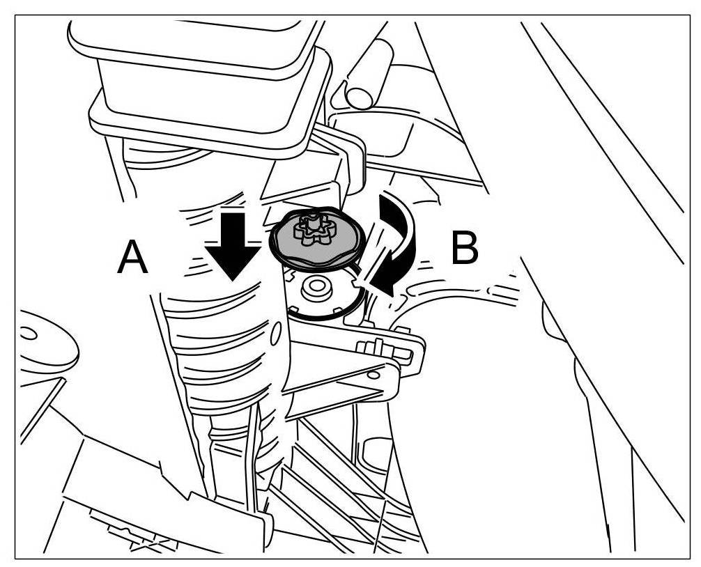 5. Place rubber stopper on plug -arrow A- and screw in -arrow B-.