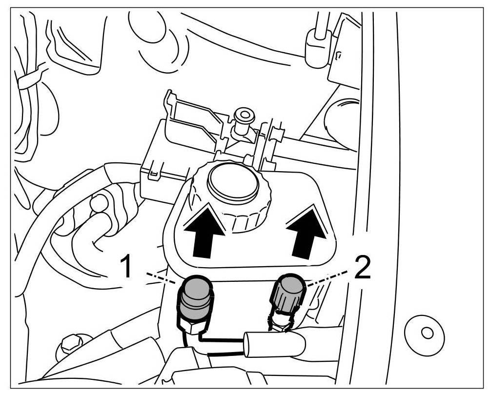 10.2. Start the engine and air-conditioning system. When the pressure on both pressure gauges sinks below 2 bar, close the valve on the low-pressure line and disconnect it from the vehicle.