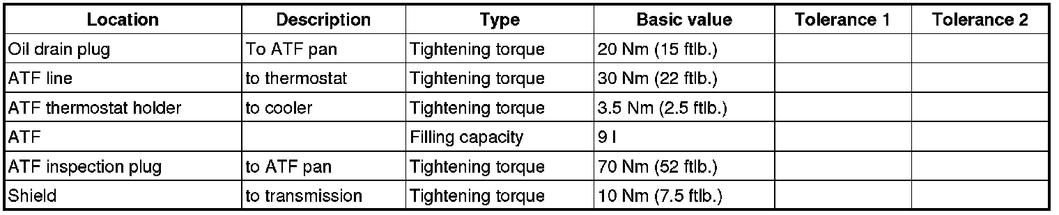 17. Screw in ATF inspection plug/filler screw -2-.=> Tightening torque: 70 Nm (52 ftlb.)