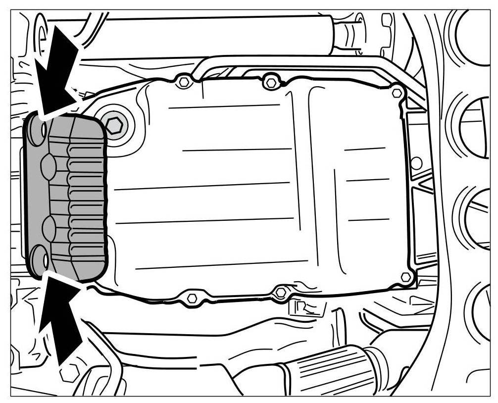 1. Remove cover of ATF pan. To do this, loosen the two fastening screws -arrows-.