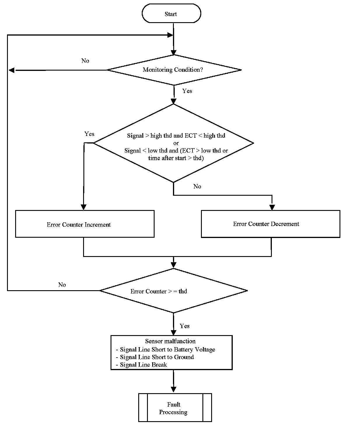 The diagnosis basically involves the comparison of the oil temperature sensor-signal to a plausible temperature range based on ECT sensor signal.
