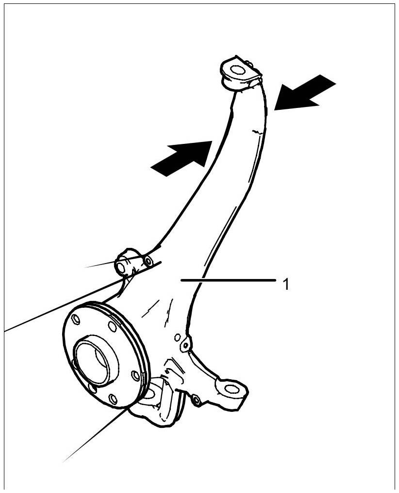Hold the top of the wheel and apply pressure to the pivot bearing -1- on alternate sides in the directions shown -arrows-.