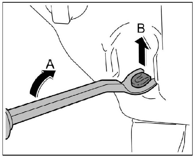 4. Remove rubber seal -arrow B- using a removal tool, universal NR.21 to lever it out of the tank -arrow A-.