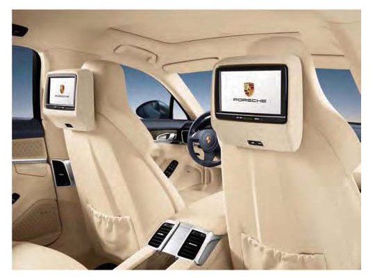 The optional Porsche Rear Entertainment system is a new development compared with the existing system used in the Cayenne models. It consists of two display consoles, which are integrated into the backrests of the front seats and include integrated players, as well as two sets of wireless infrared headphones. They are equipped with swivelling, high-resolution 7-inch WVGA TFT displays.