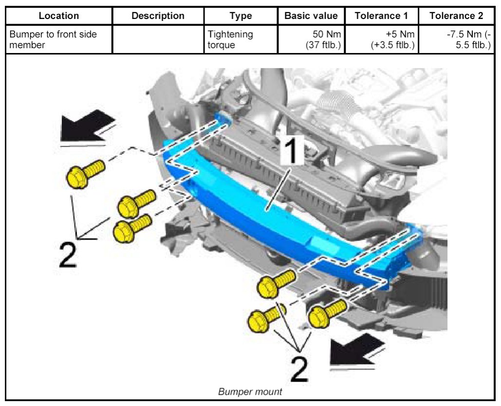 - Tightening torque: 50 Nm (37 ftlb.) +5 Nm (+3.5 ftlb.)-7.5 Nm (-5.5 ftlb.)