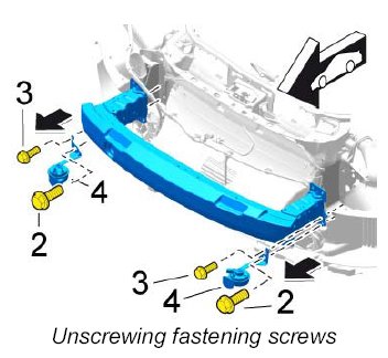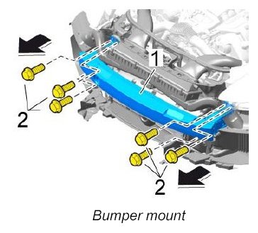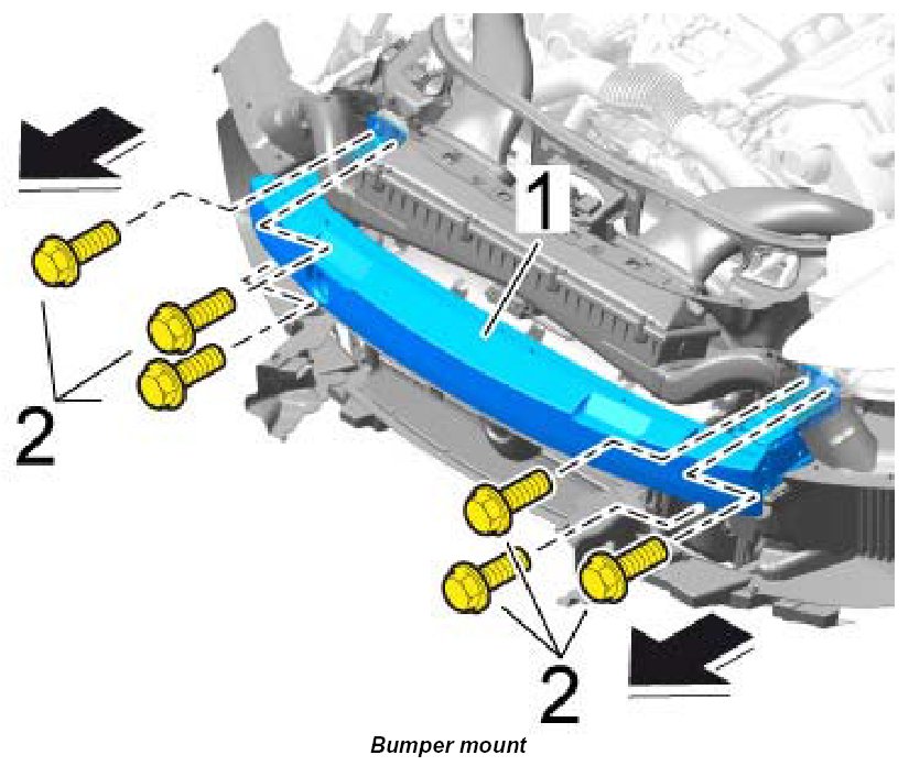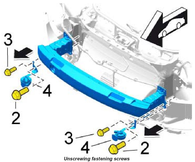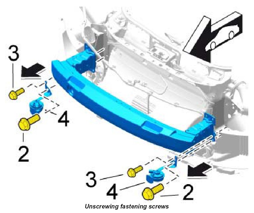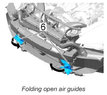 - To avoid damage to the wing, the radiator module must be secured at the same height before the bumper is removed.